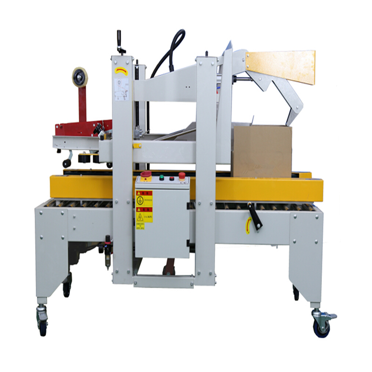 青島諾邦是一家自動化設備生產(chǎn)廠家,專業(yè)生產(chǎn)及銷售紙箱封箱機,可單機使用,也可配套流水線使用。封箱機主要有一下系列:自動折蓋封箱機,氣動封箱機,角邊封箱機,工字型封箱機等。我們型號齊全,價格實惠,經(jīng)久耐用,豐富的技術和完善的售后服務在行業(yè)中得到一致好評。下面諾邦小編給介紹一下我們的自動折蓋封箱機: