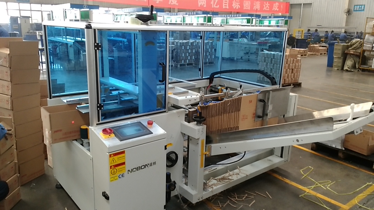 開(kāi)箱機(jī)的動(dòng)作是集合了取箱、成型、折蓋、封底為一體。